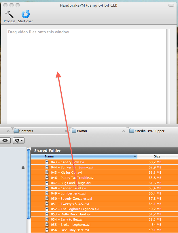 Note: HandbrakePM also lists the user's presets, at the end of the popup-menu. Since the CLI is called outside of a user-environment, this only works if your Handbrake presets can be found via the following path: