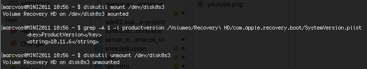 $ grep -A 1 -i productversion /Volumes/Recovery\ HD/com.apple.recovery.boot/SystemVersion.plist